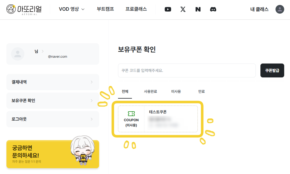 ๋ฐ๊ธ๋ ์ฟ ํฐ์ ํ์ธํด ์ฃผ์ธ์.