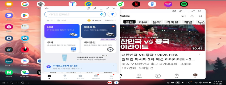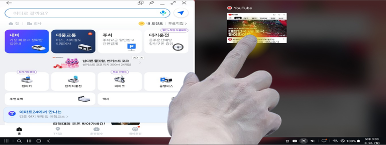 APP의 리모콘 기능으로 DeX의 앱을 화면 분할할 수 있습니다.