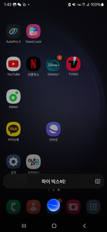 X모드에서는 빅스비를 설정할 수 없습니다. 반드시 X모드 사용 전 설정을 완료합니다.
