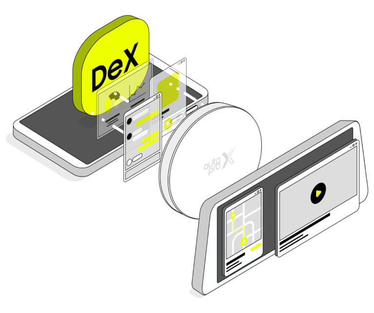 휴대폰의 안드로이드 오토나 삼성 DeX를 차량과 무선으로 연결하여 이용하는 제품입니다. AutoProX 기능을 이용하면, 내비게이션과 OTT(동영상) 콘텐츠 등 스마트폰에 설치된 모든 앱을 차량 디스플레이로 동시에 즐길 수 있습니다.