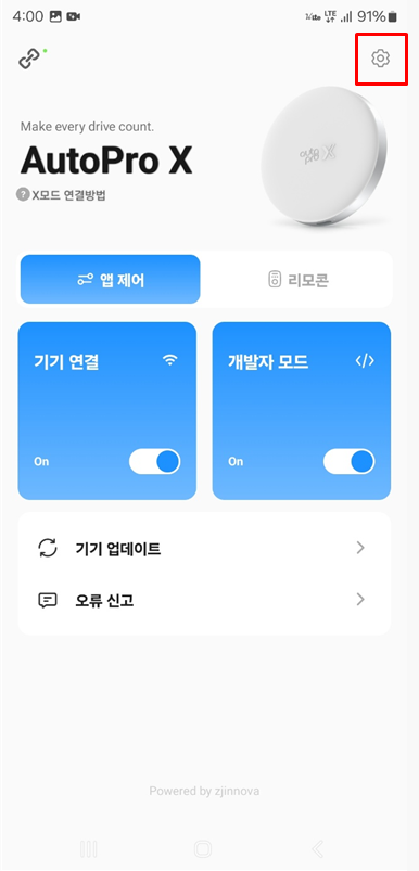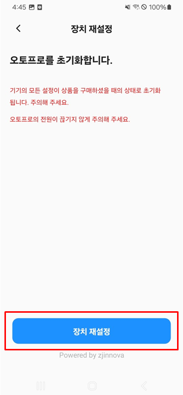 장치 재설정은 AutoPro X를 초기화할 때 사용하는 기능으로, 기기의 모든 설정값이 최초 상태로 초기화됩니다. 기기 사용에 문제가 없을 시 초기화를 권장하지 않습니다.