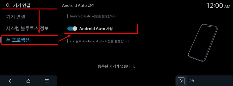 STEP 기기 연결 ▶ 폰 프로젝션 ▶ Android Auto ▶ 활성화