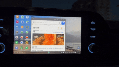 앱 상단을 선택한 뒤, 트랙패드를 누른 상태에서 1초간 유지한 뒤 드래그하면 자유롭게 이동할 수 있습니다. (휴대폰 기종에 따라 두 손가락을 동시에 사용하여 이동할 수 있습니다.)