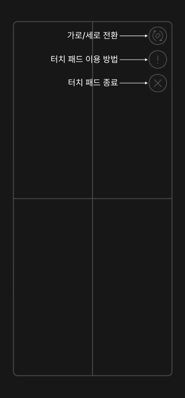 아래 화면에서는 스마트폰을 터치패드로 사용하여 DeX를 조정할 수 있습니다.