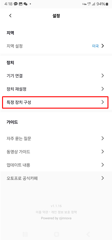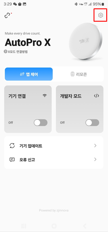 오토프로x의 전원이 켜지면 휴대폰의 APP과 연결합니다.