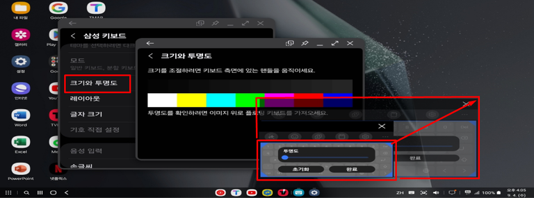 키보드가 너무 작다면, 아래의 방법으로 키보드의 크기를 조정합니다.