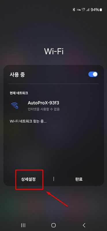 STEP02 Wi-Fi 팝업 화면 ▶ 상세설정 선택