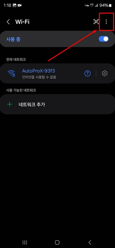 STEP03 Wi-Fi 상세 화면 ▶ 우측 상단의 더보기 선택