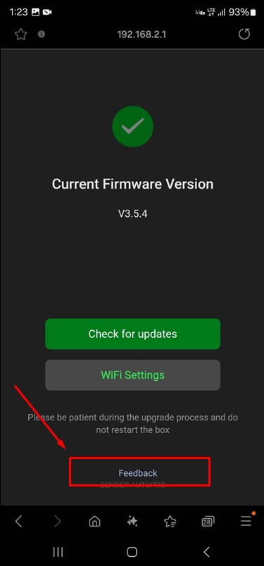 아래와 같이 초기화면이 나타납니다. (초기화면이 나타나지 않았다면, 제대로 연결되지 않았을 수 있습니다.) 화면 아래에 있는 'Feedback' 부분을 선택하여 로그 화면으로 진입합니다.