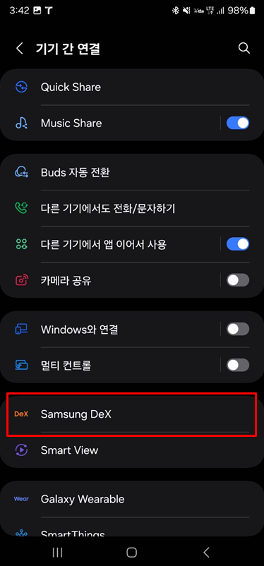 ※ 바로 DeX 연결을 하려면 3번으로 이동합니다.