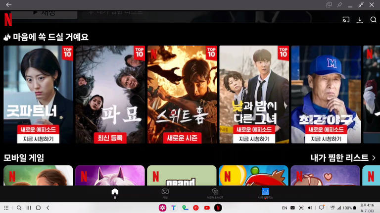 넷플릭스의 기본 비율은 휴대폰 비율로만 보여집니다. 하지만, 아래의 조치를 취하면 전체 화면으로 넷플릭스를 즐길 수 있습니다.