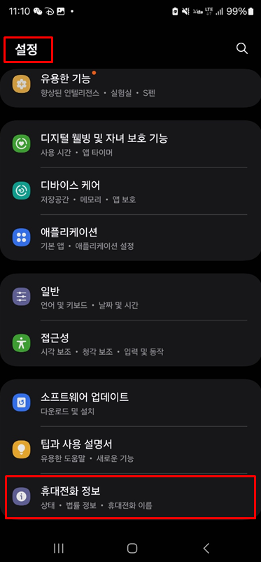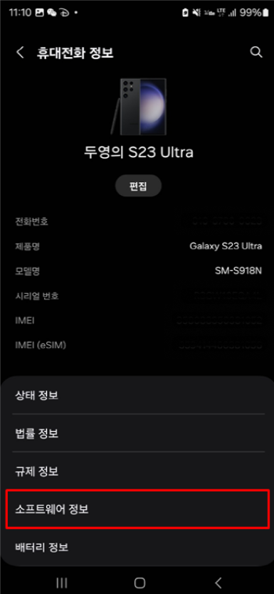 STEP01 설정 ▶ 휴대전화 정보 ▶ 소프트웨어 정보