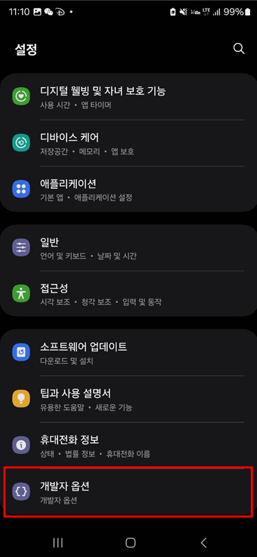 STEP03 숨겨졌던 '개발자 옵션' 메뉴 노출 ▶ 개발자 옵션 선택