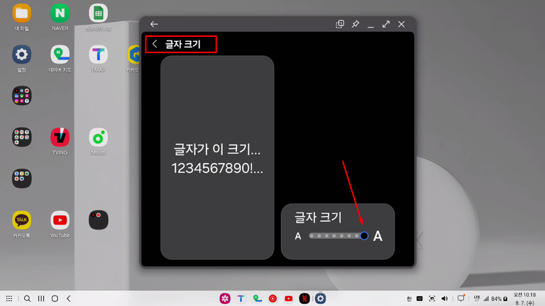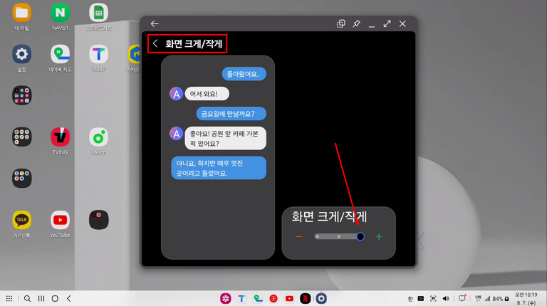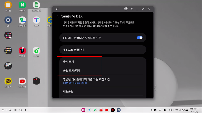 영상으로 알아보기앱 크기 조절STEP01 (DeX 화면에서) 설정 ▶ Samsung DeX 선택STEP02 글자 크기 ▶ 최대로 조정STEP03 화면 크게/작게 ▶ 최대로 조정배경화면 변경하기