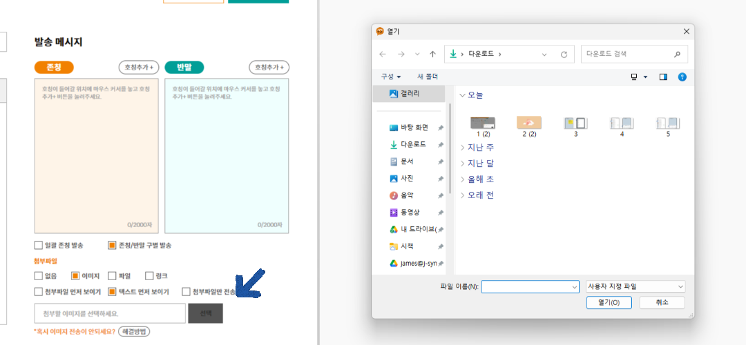 ② '선택' 버튼을 누르고 첨부할 파일 선택