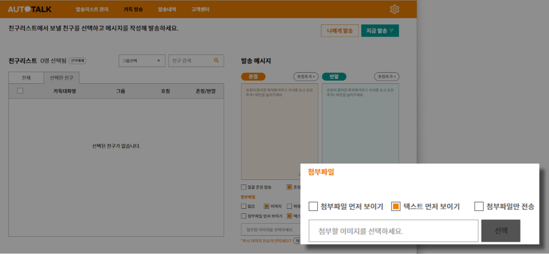 텍스트 먼저 보이기 : 작성된 메시지 발송 후 첨부파일 발송