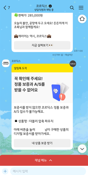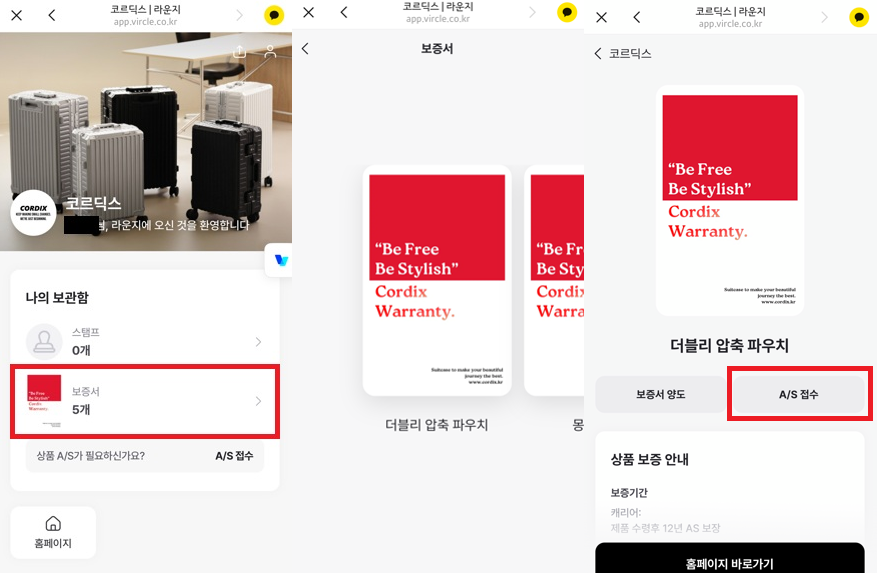 자사몰 및 네이버 Cordix 공식 스마트 스토어에서 구매하신 고객님께는, 상품 수령 7일 후 ‘카카오 알림톡’으로 디지털 보증서가 자동 발급됩니다. 확인 후 보증서 등록을 꼭 완료해 주세요.