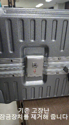 저희 코르딕스 트윈 모델은 지퍼를 잠금장치에 잠금 후 비번을 분실 해서 잠금장치를 열기 힘든 상황일 경우 비상시를 대비하여 지퍼 손잡이락을 파손하여 비상시에 열 수 있도록 되어 있습니다