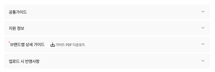 가이드 내 [공통 가이드 및 브랜드별 상세 가이드]은 누락 없이 제작이 필요하며, 미준수로 확인될 경우 사후 수정 및 재업로드 요청을 받으실 수 있어요.