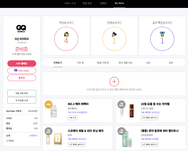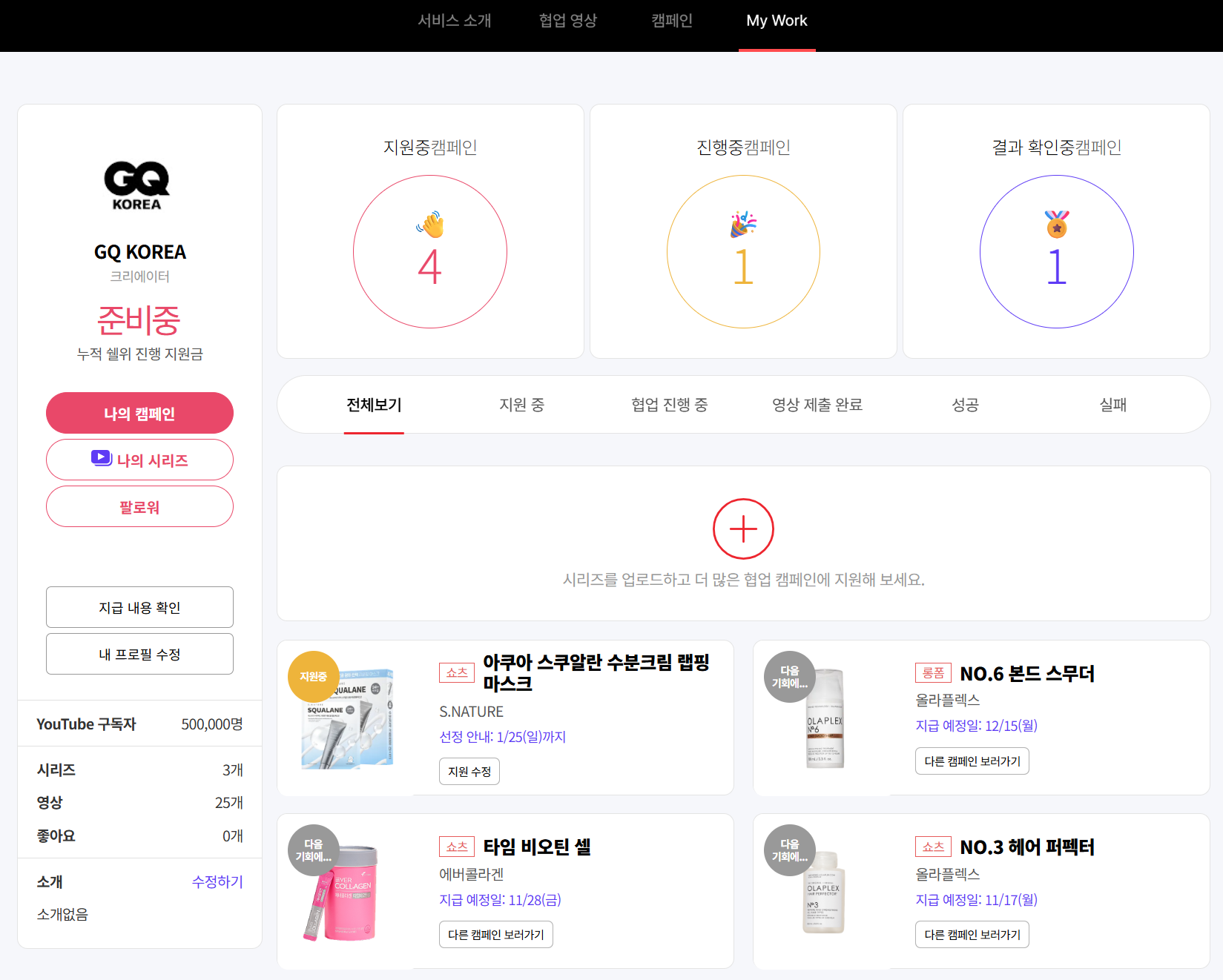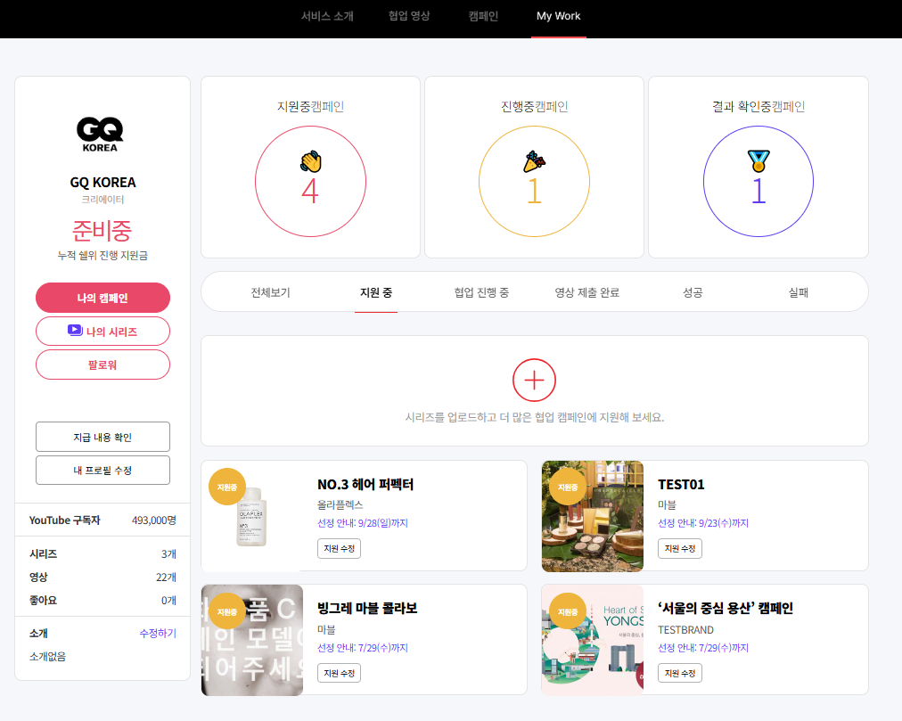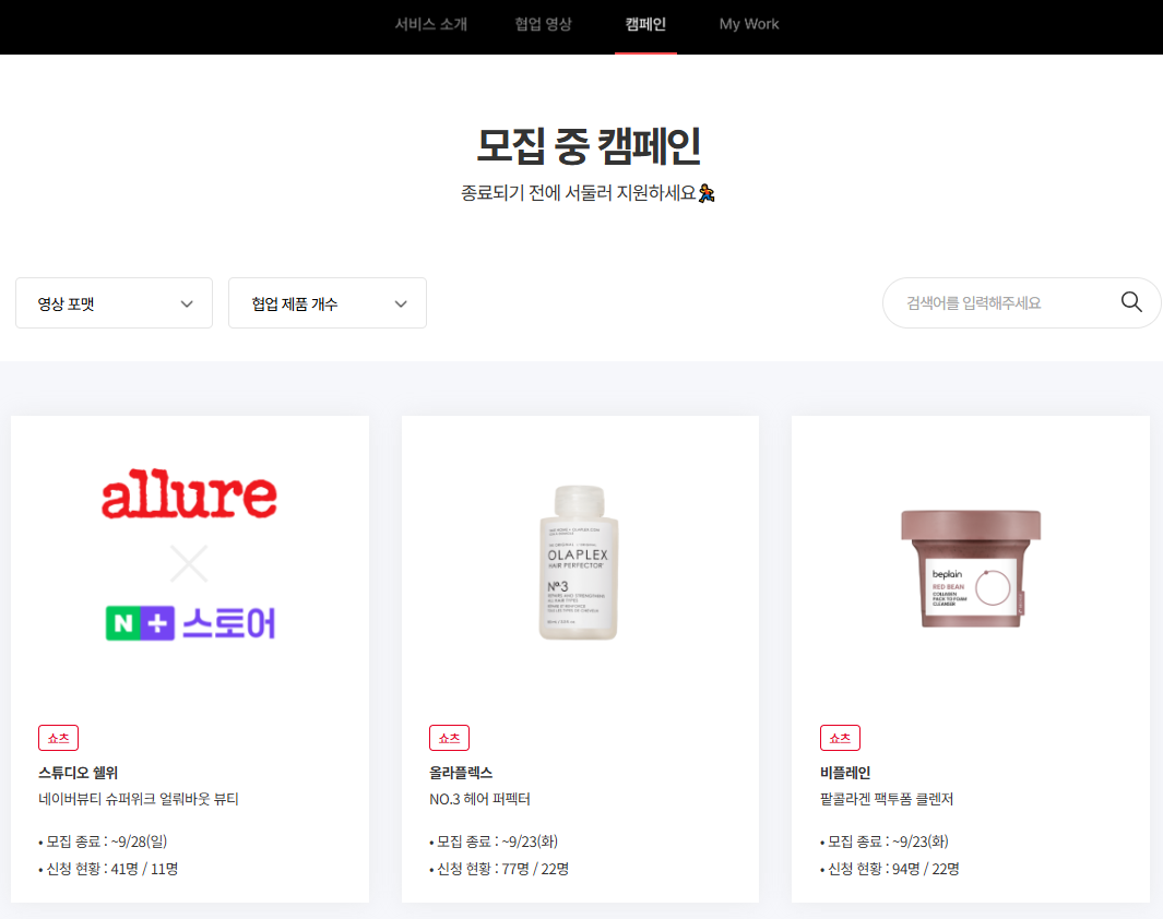 회원 가입과 시리즈 등록이 완료되었다면, 현재 모집중인 캠페인에 지원할 수 있어요.