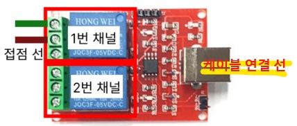 릴레이보드 연결 포트 변경 (기존에 꽂혀있는 곳이 아닌, 다른 포트에 연결)