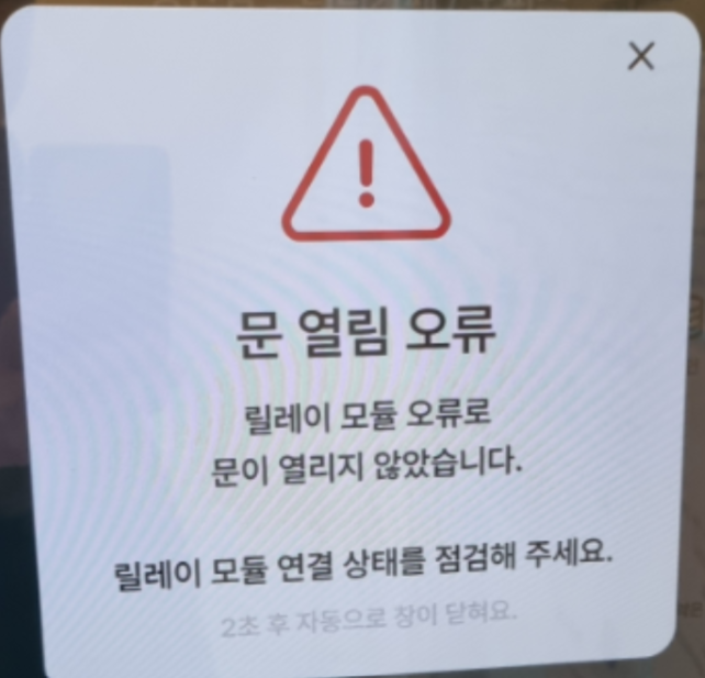 키오스크에 "문 열림 오류 - 릴레이보드 모듈 오류로 문이 열리지 않습니다"