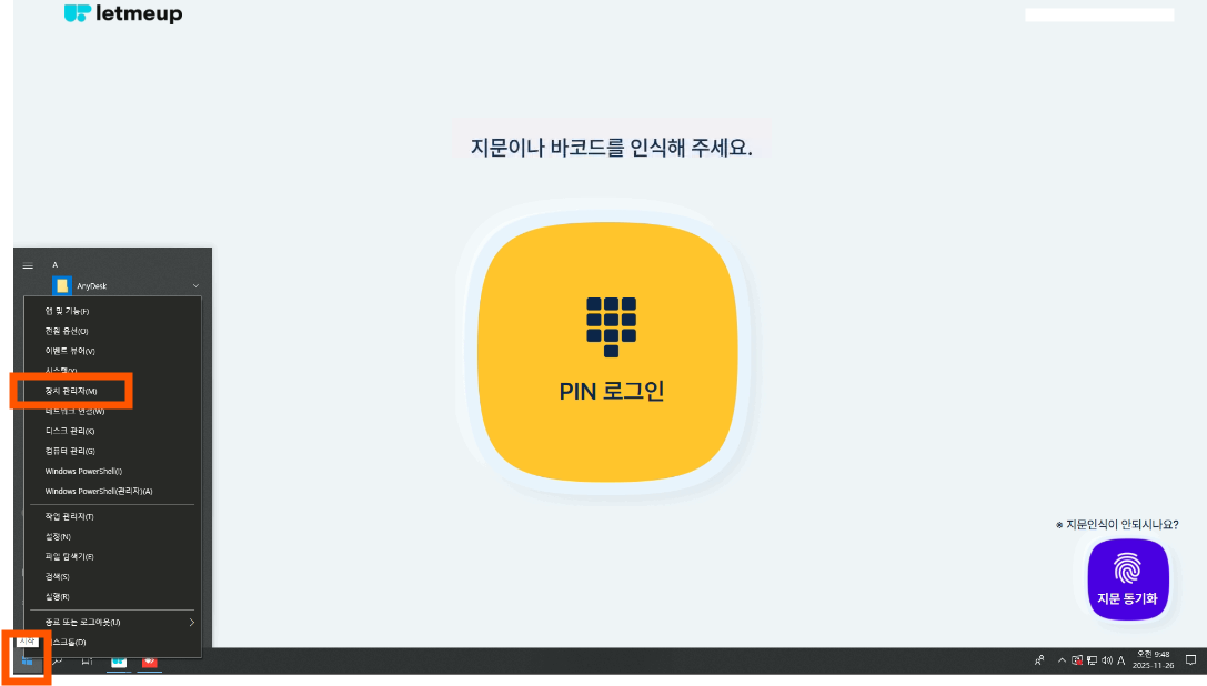 윈도우버튼 마우스 우측 버튼-장치 관리자 클릭