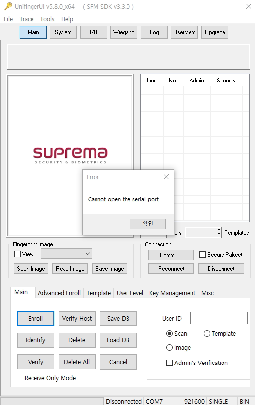 [2.지문인식기 프로그램 [UniFinger] 실행]