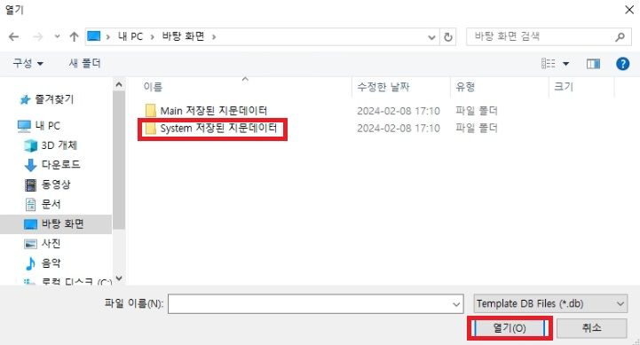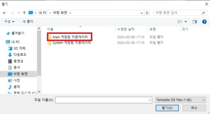 저장 된 지문데이터 열기 (Maim데이터와 System데이터 구분 확실히!)