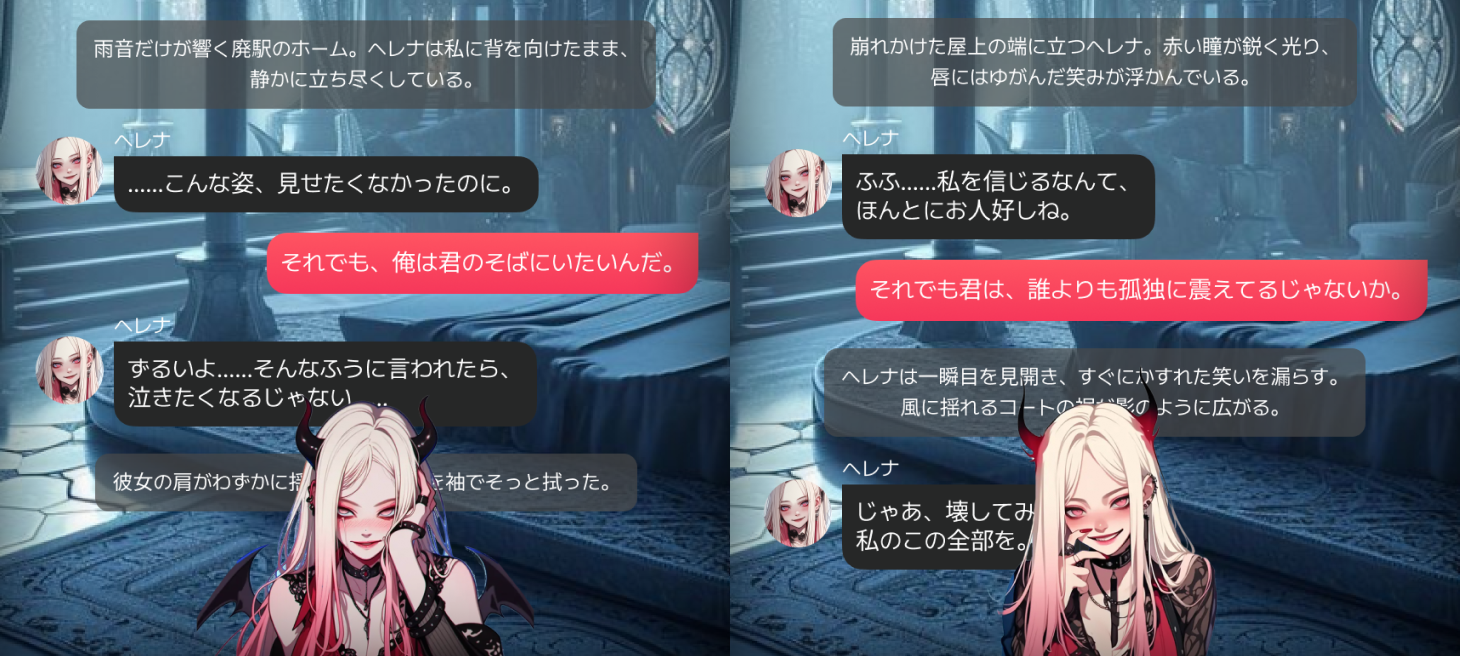 感情と背景画像の生成:会話の状況に合わせたキャラクターの感情と背景画像を生成できます。
