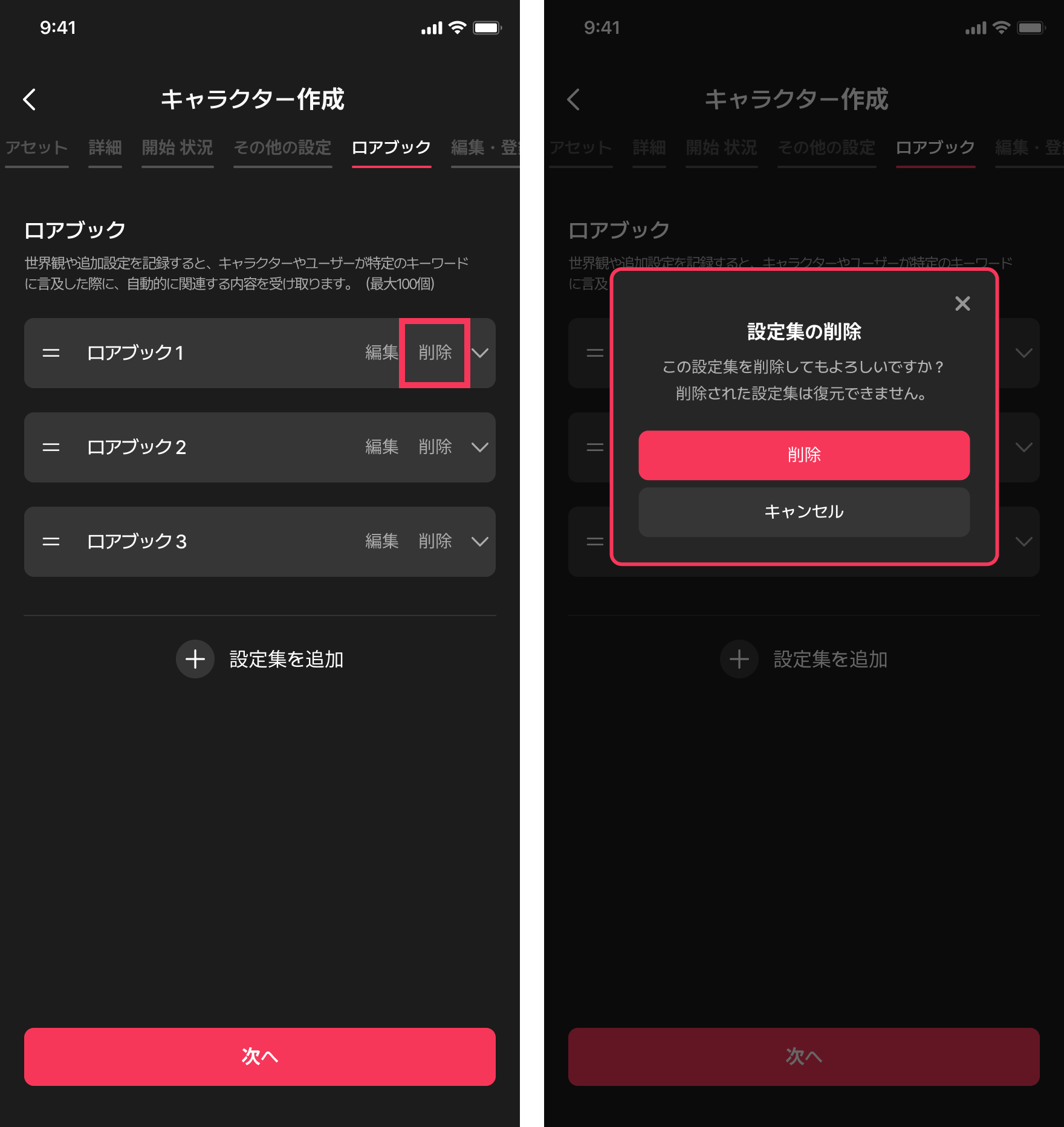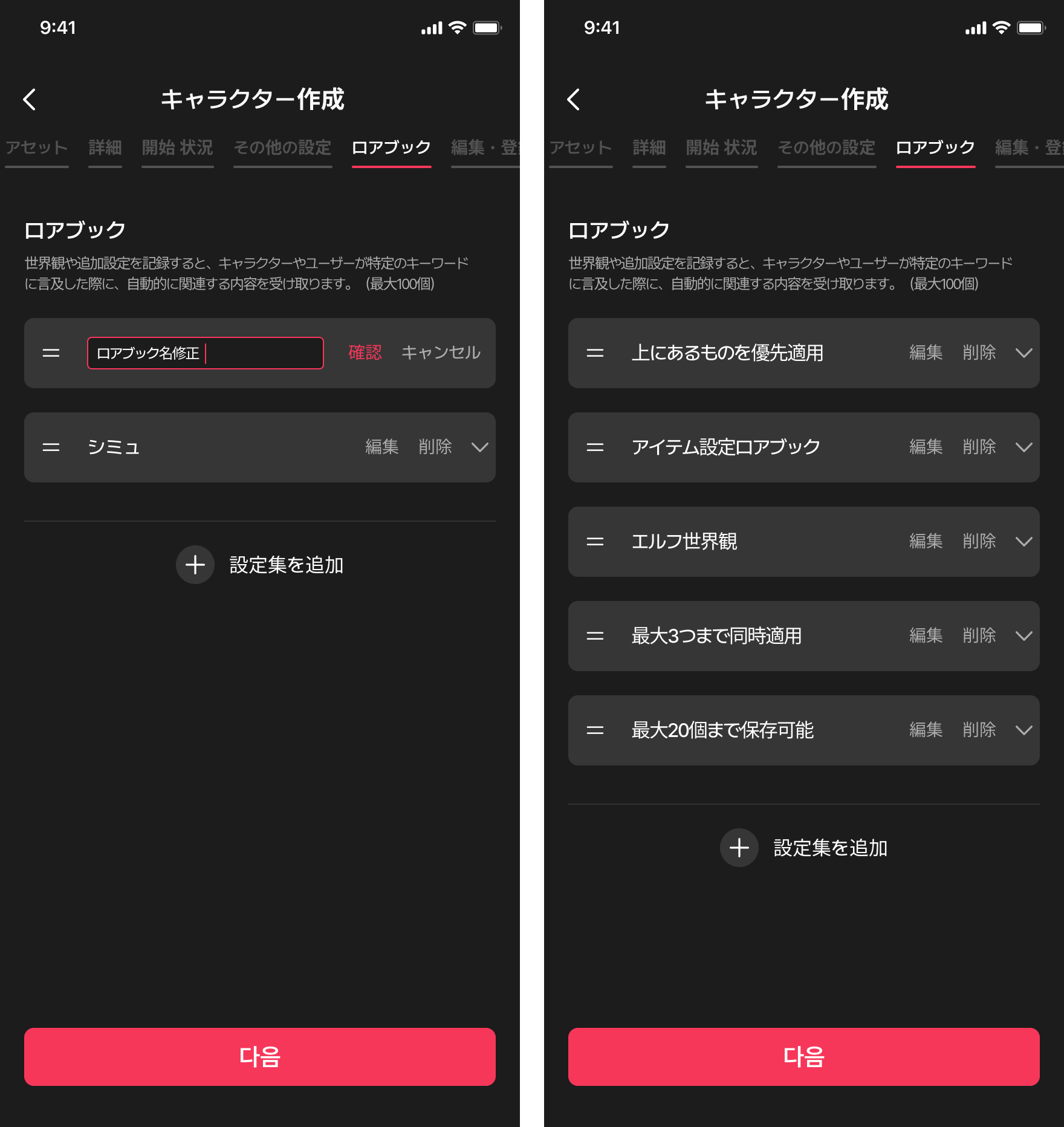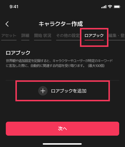 キャラクターの詳細設定以外にも、自分だけのローブックでより面白いチャットを作ることができます