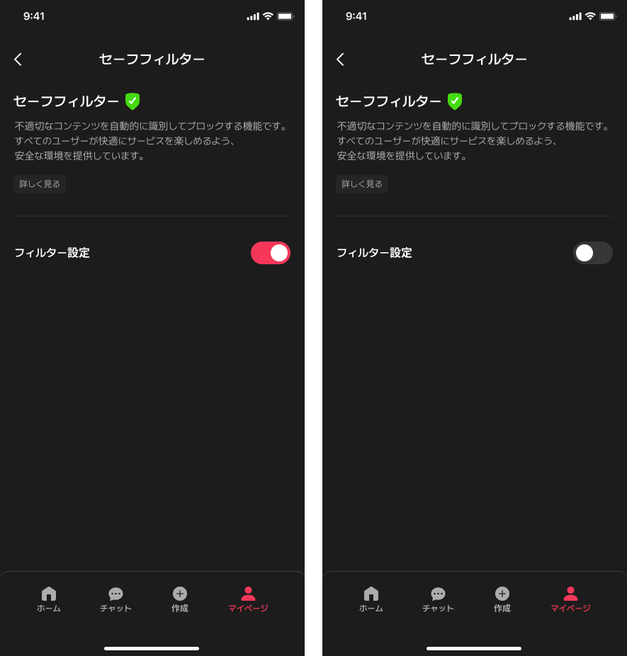 未成年会員の場合、セーフティフィルターをOFFにすることはできません。