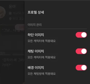 또한, 채팅방 상단의 더보기 버튼을 눌러 이미지 보여주기 방식을 토글로 변경할 수 있습니다.