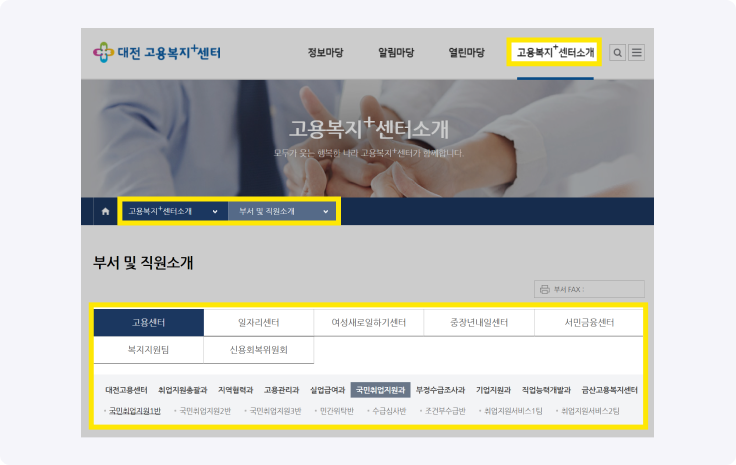 2️⃣센터소개 > 부서 및 직원소개 > 고용센터-국민취업지원과