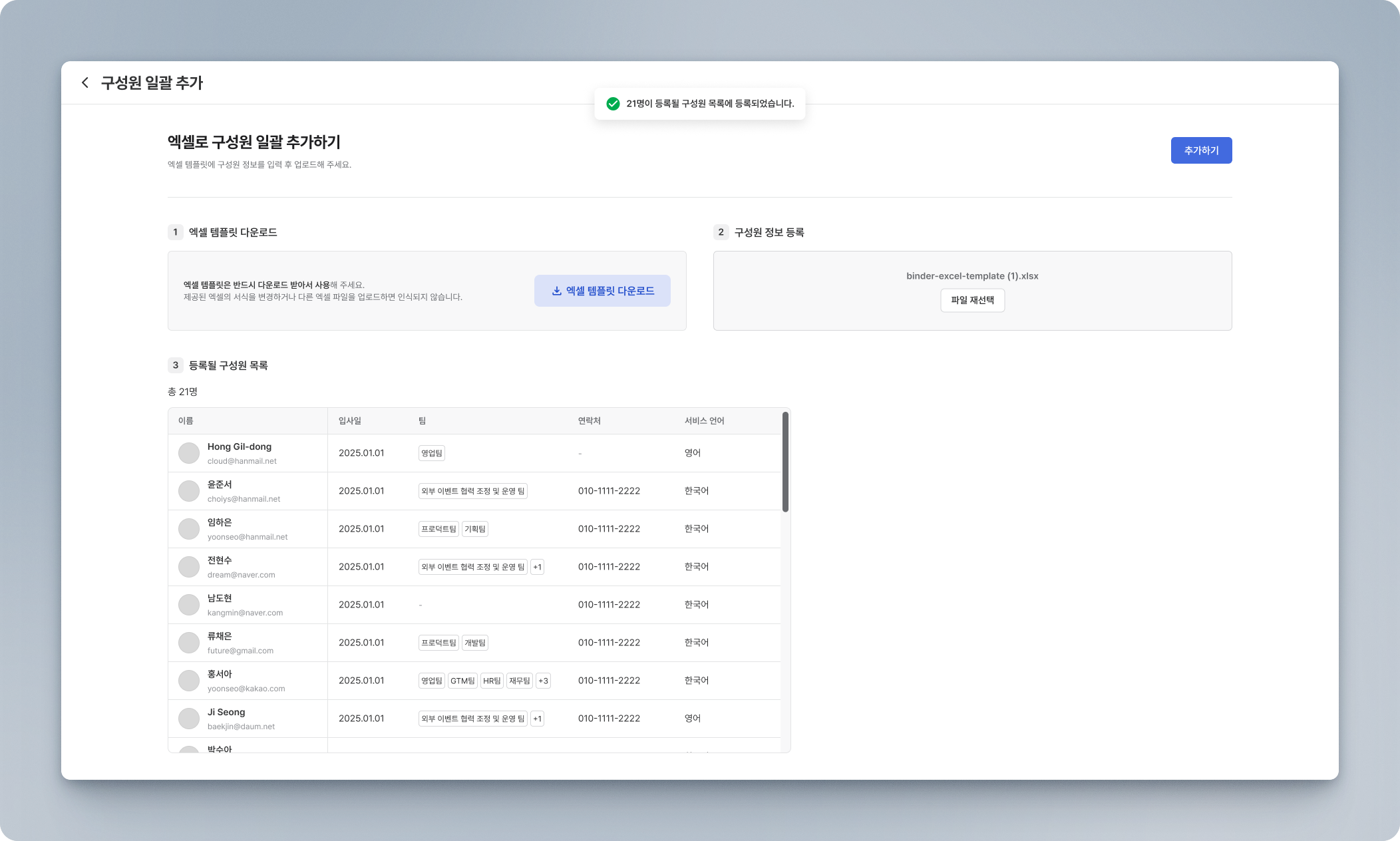 구성원 추가하기(엑셀로 일괄 추가하기)