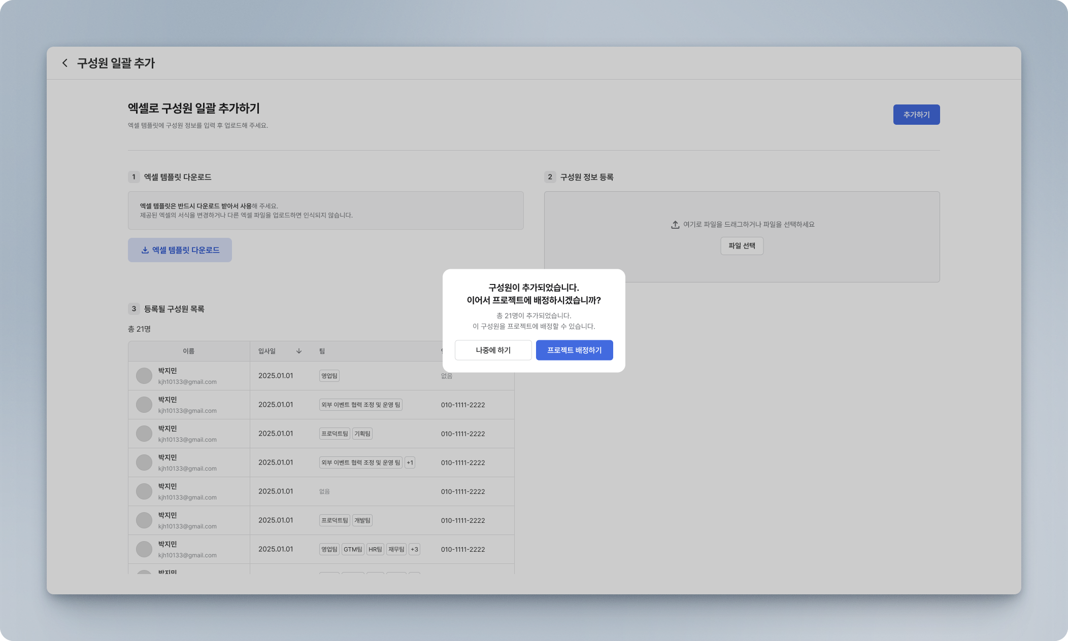 또한 아래 두 가지 경로로 언제든 구성원을 프로젝트에 배정할 수 있습니다.