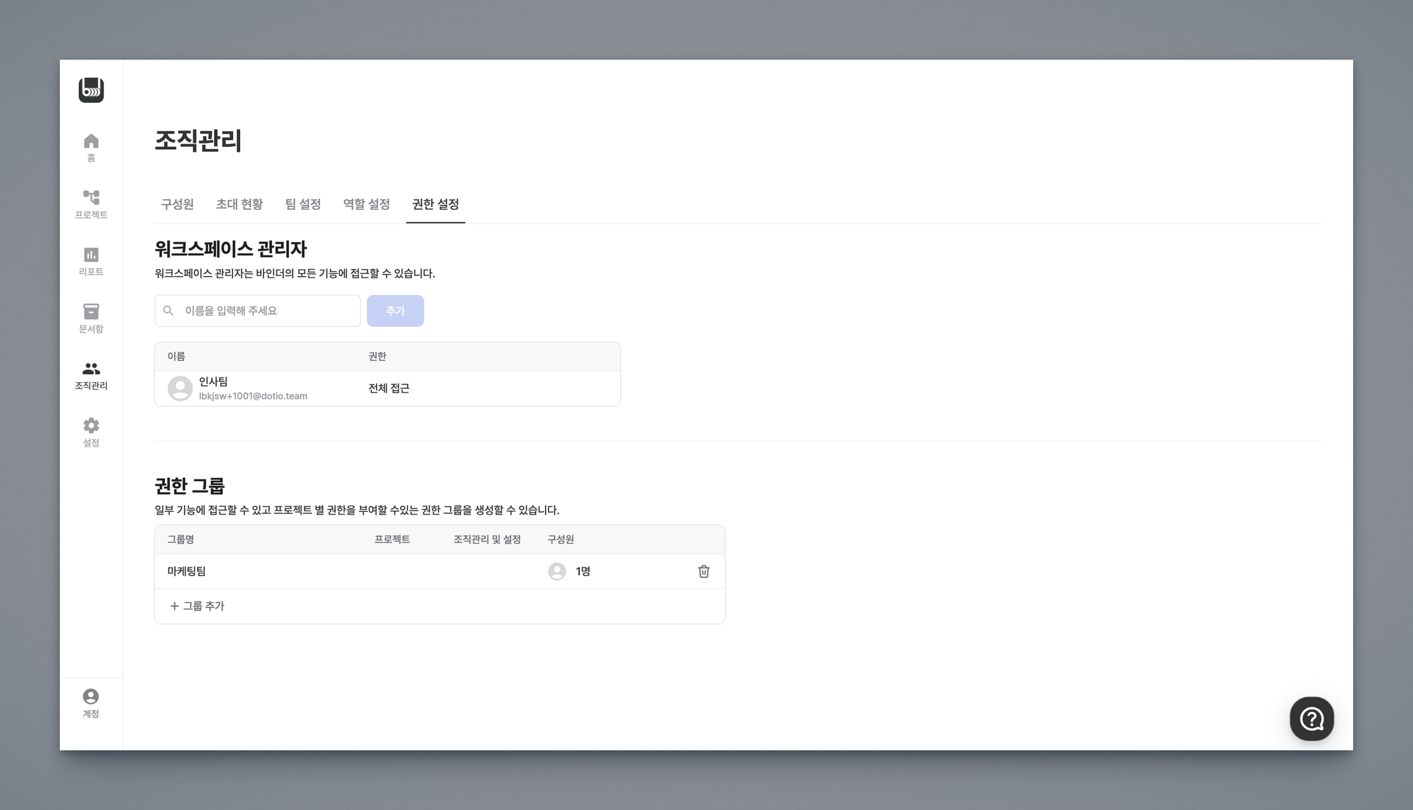 조직관리 및 설정: 권한 설정을 제외한 조직관리 화면과 설정 화면에 접근할 수 있습니다.