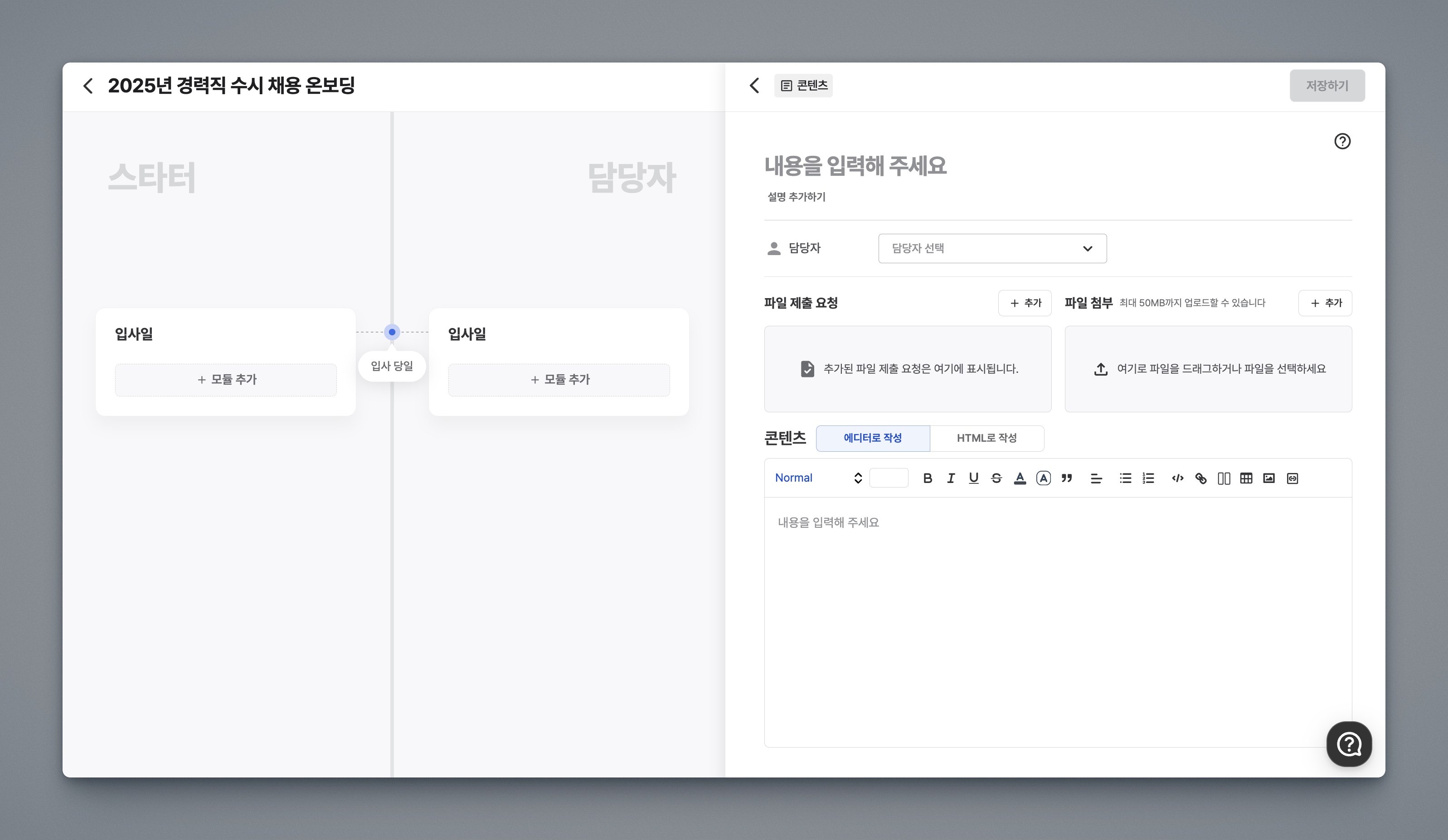 담당자의 모듈에는 스타터에는 없는 담당자를 설정 기능이 있습니다. 이 기능을 이용해 특정 담당자를 수신처로 지정하거나, 역할 기능 활용할 수 있습니다.