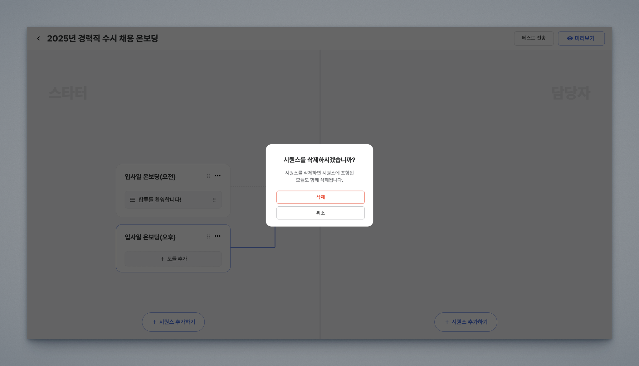 삭제를 원하는 시퀀스의 우측 점(•••)을 누른 후 삭제 버튼을 클릭합니다.