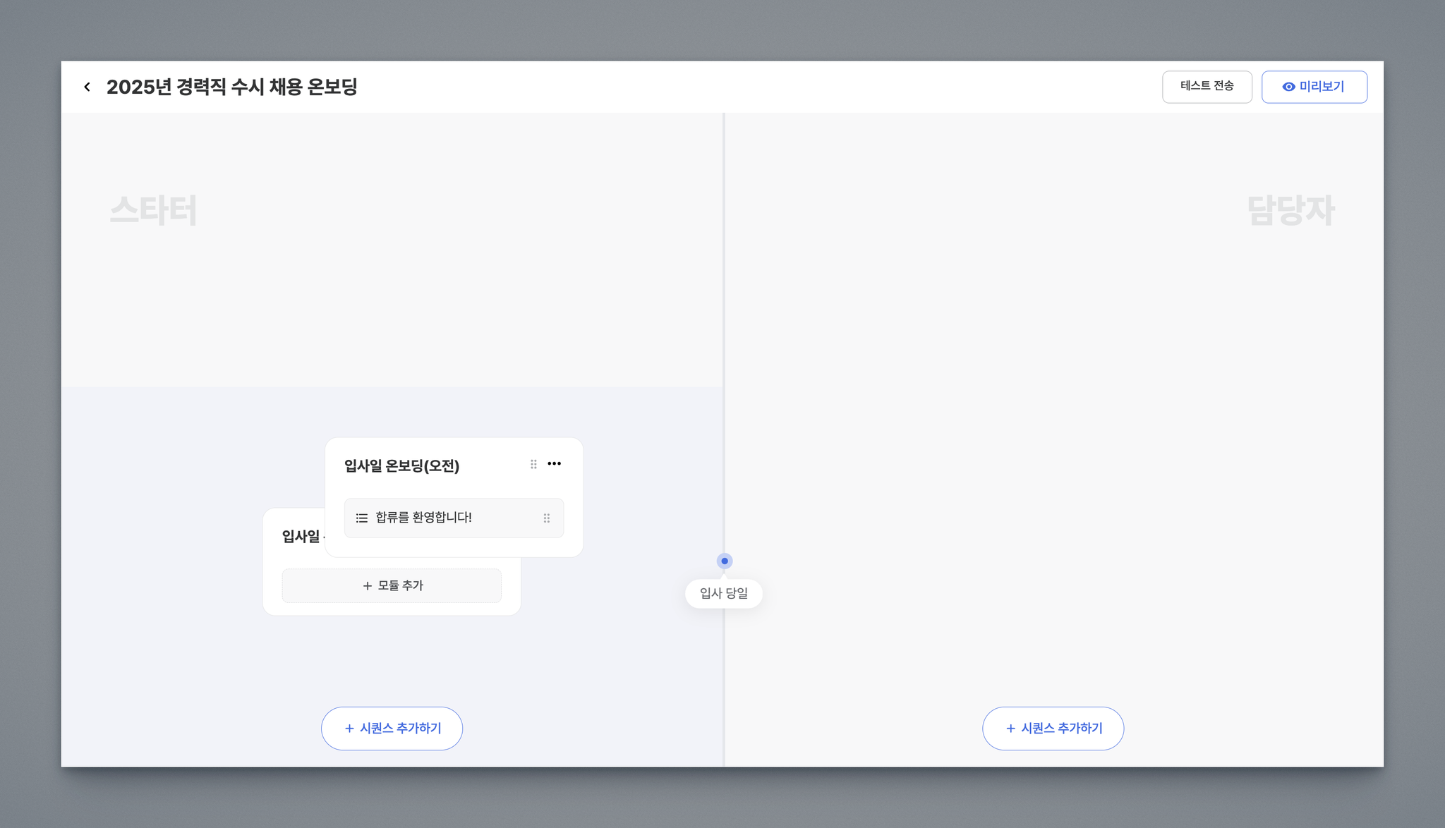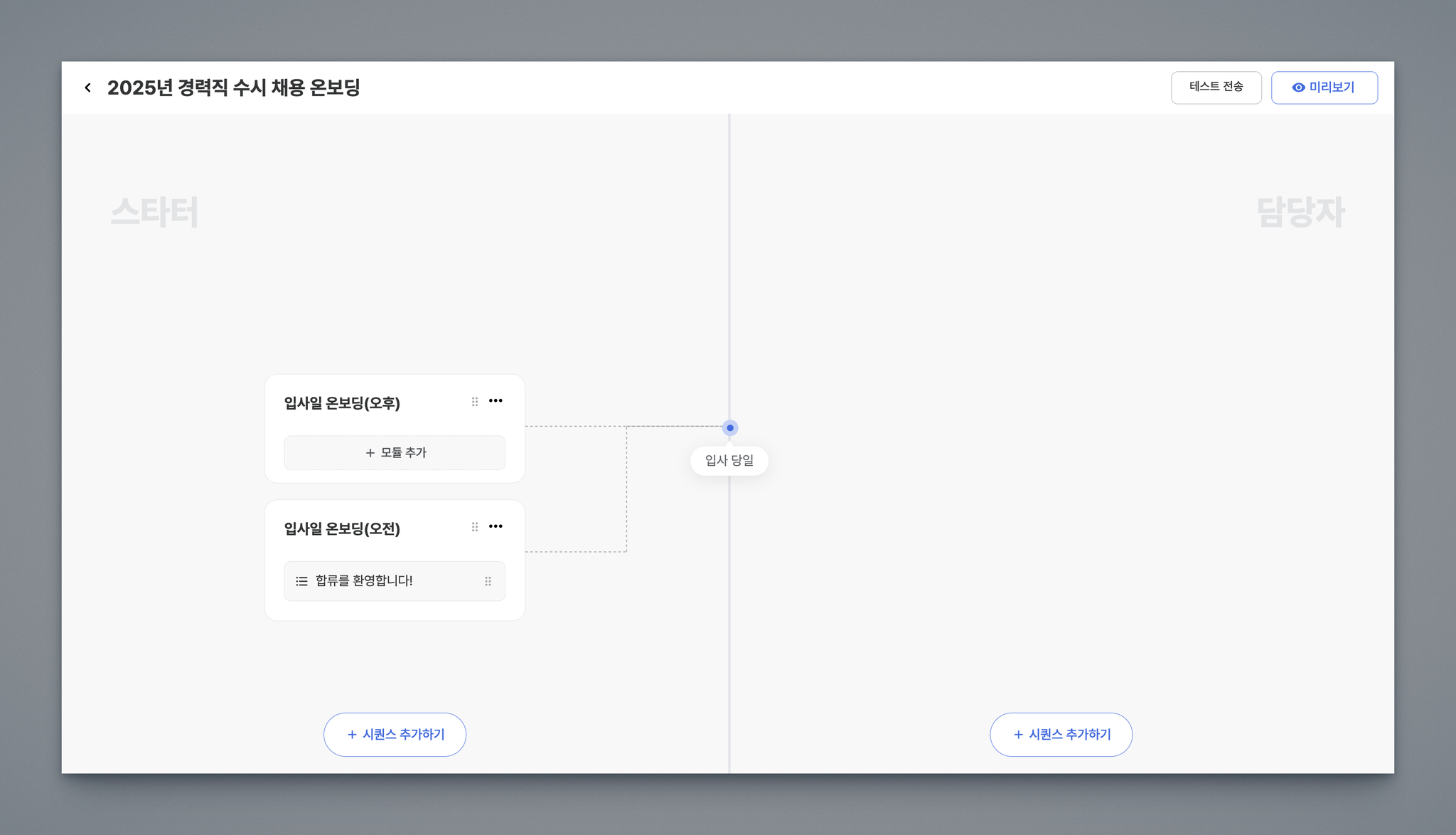 동일 시점의 시퀀스의 위치만 옮길 수 있습니다. 예를 들어 입사 당일 시퀀스를 입사 10일차 위치로 옮길 수 없습니다.