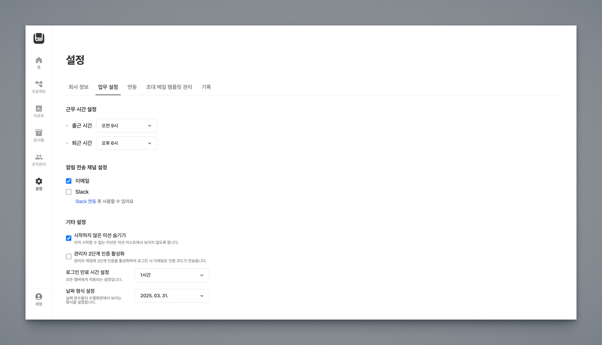 워크스페이스에 참여하고 있는 모든 임직원의 로그인 만료 시간을 설정할 수 있습니다.