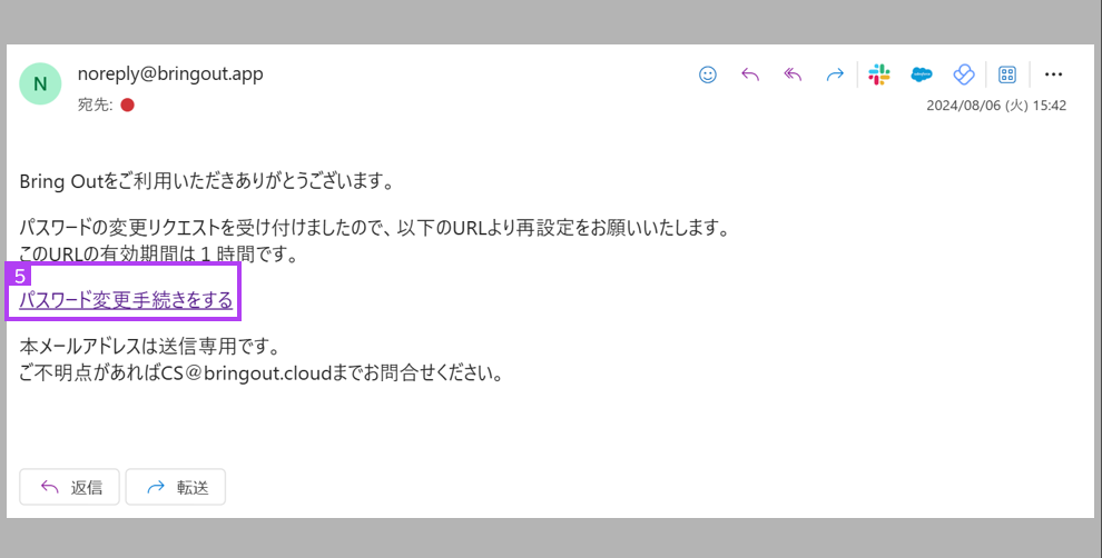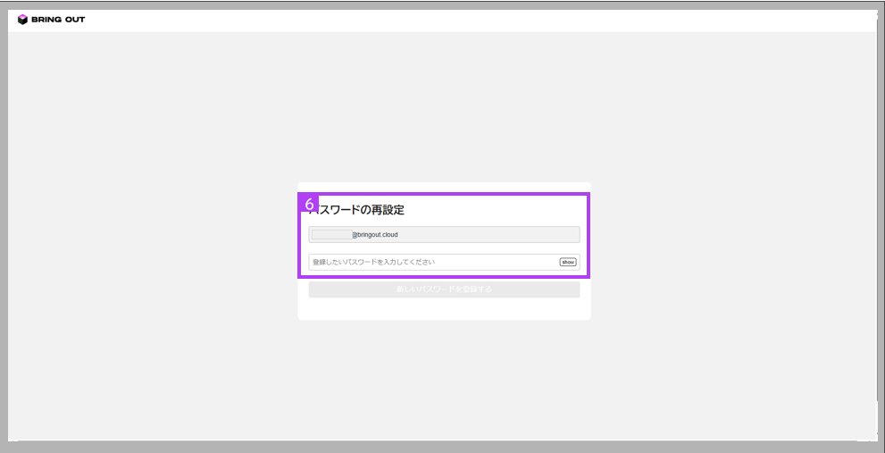 • 入力されたメールアドレスはBring OutでIDとして登録されたものか