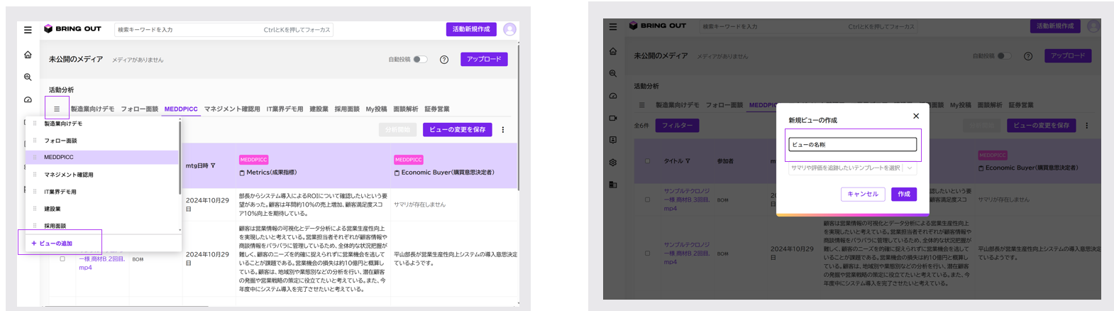 ≡ボタン→「ビューの追加」をクリックし、登録したい名称を入力します。