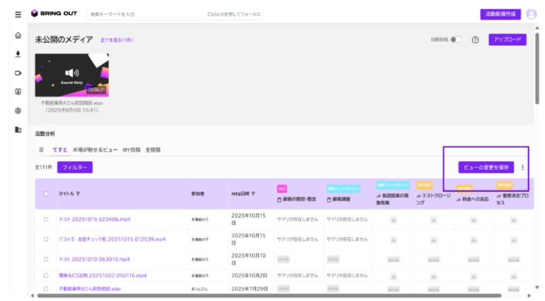 こちらも同様に、「ビューの変更を保存」をクリックすることで、現在指定している条件のまま保存することが可能です。
