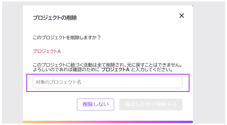 プロジェクトを削除すると、そのプロジェクトに紐づく投稿もすべて削除されます。