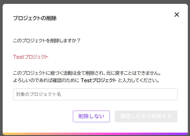 プロジェクトを削除する場合、そのプロジェクト内にアップロードされているデータはすべて削除されます。