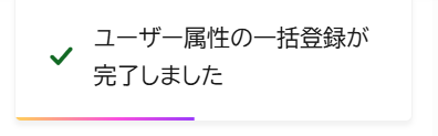 画面右上に「ユーザー属性の一括登録が完了しました」と表示されたら、設定完了です。
