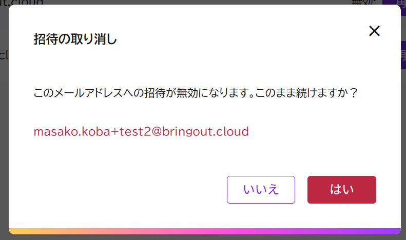 なお、招待を取り消した場合は有効期限内であってもメールの招待リンクは無効になります。