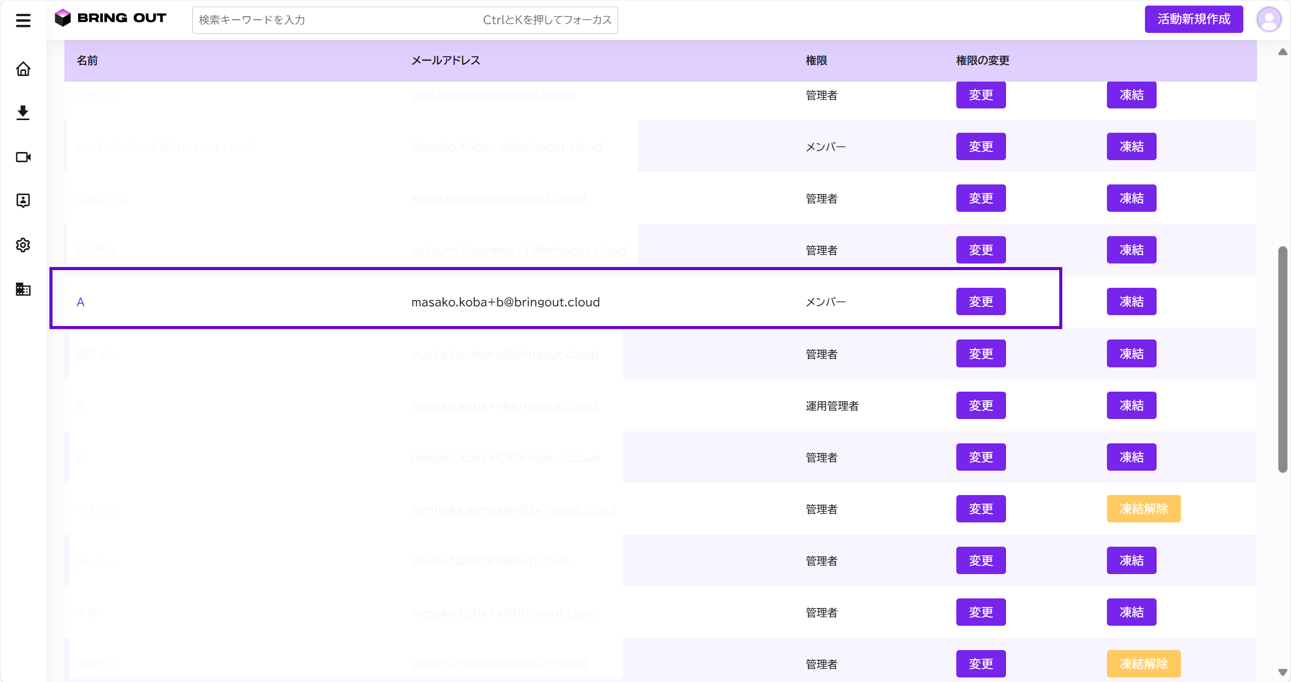 凍結されている方を再招待したい場合は、一度凍結の解除をしてから招待してください。