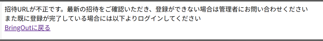 現在BringOutを利用中のユーザーや、凍結処理をしているユーザーには招待を送ることができません。